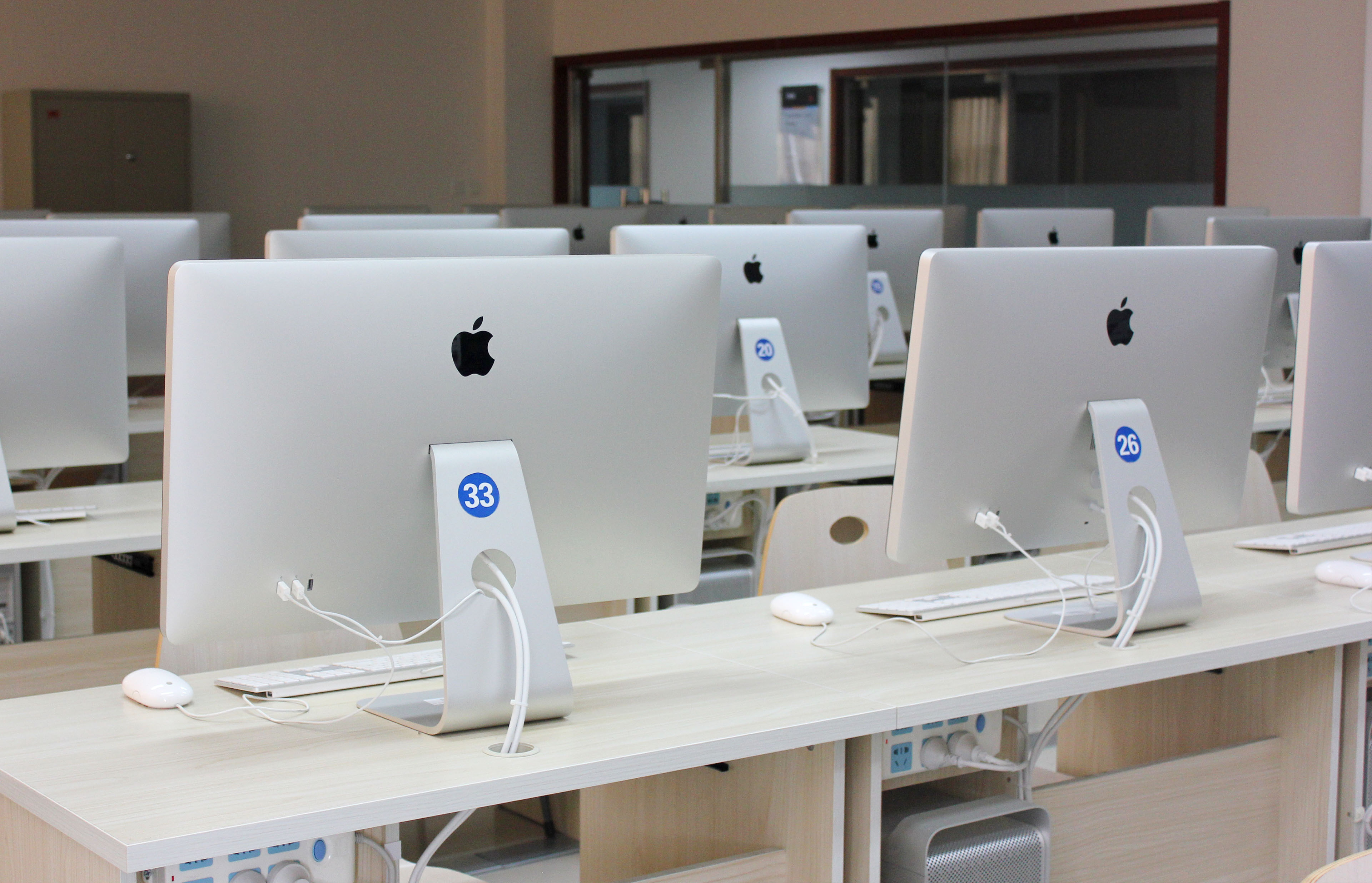 實訓(xùn)中心建有多媒體制作機房七間,其中蘋果機房兩間,共計電腦近80臺,均在實訓(xùn)中心三層,所有電腦均為高配,能夠滿足所有教師和學(xué)生對圖片處理、特效制作等功能的要求。